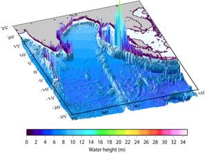Height of tsunami along the coastlines devastated following the earthquake off Sumatra in 2004 (simulation result) |